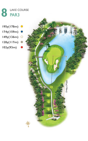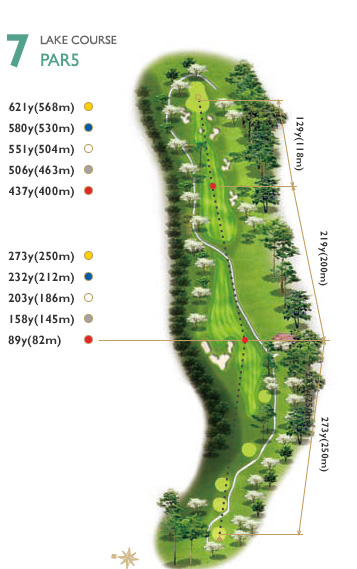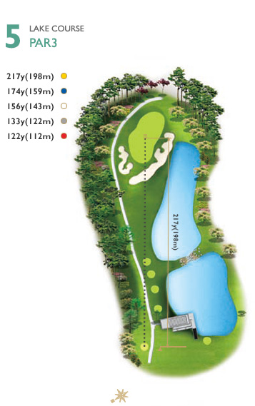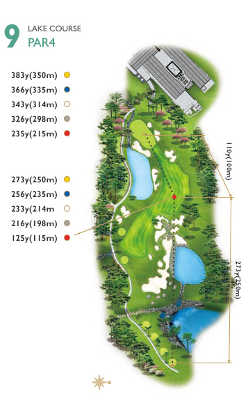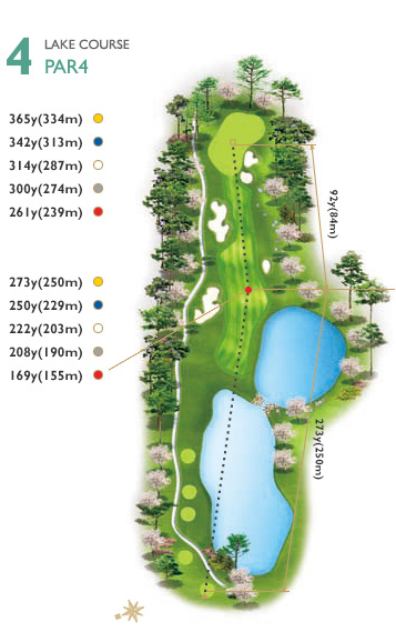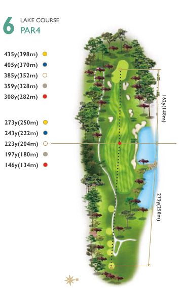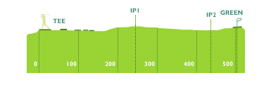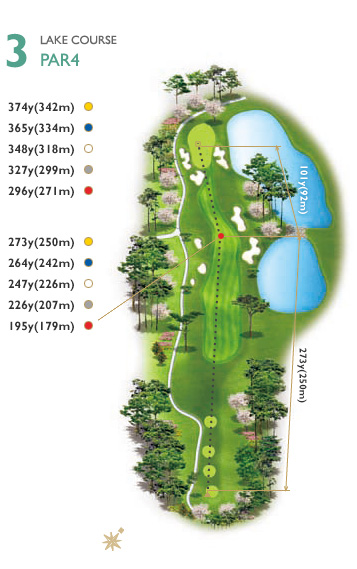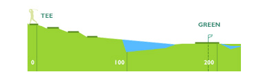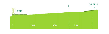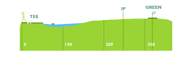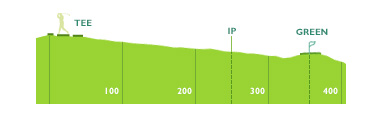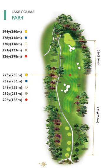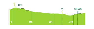 제일 짧은 서비스홀이며 너무 많은 거리를 냈을 경우 내리막 스탠스이므로 220y만 보내는 것이 좋다.