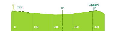 그린이 가로로 길기 때문에 정확한 거리에 따른 클럽의 선택이 중요하다.
