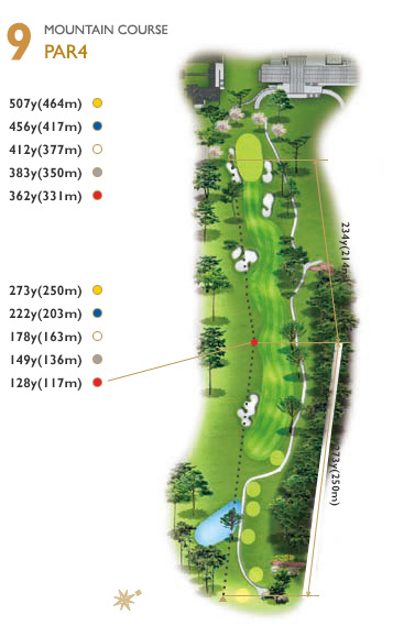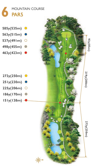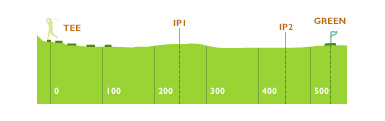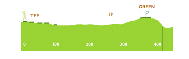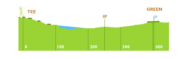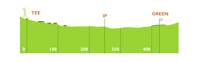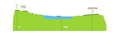 티잉 그라운드 좌측에서 어드레스 하는 것이 좋다. 핀 위치에 따른 공략이 중요하며 항상 앞바람에 유의해야 한다.