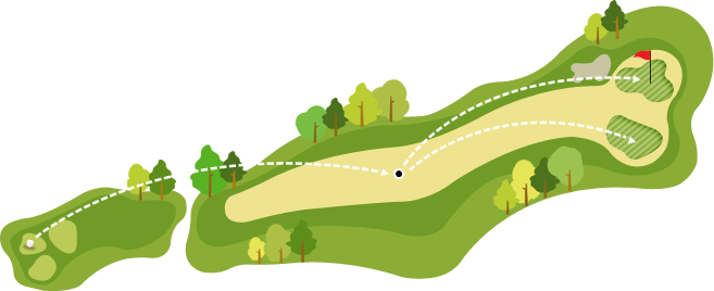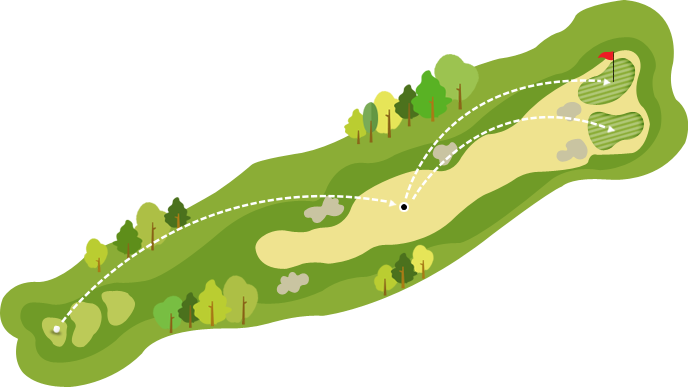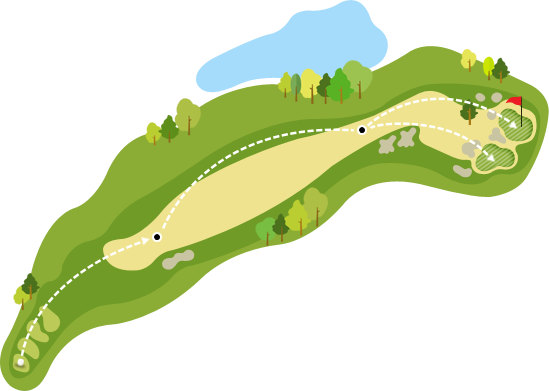 시선을 곧게 뻗으면 소나무 해저드에 숨이 턱 막히지만, 주위에 어우러진 자연림이 마음 편안한 미소를 짓게 합니다. 마음을 비우고 편안하게 접근하는 것이 포인트.