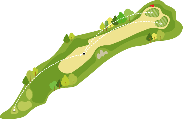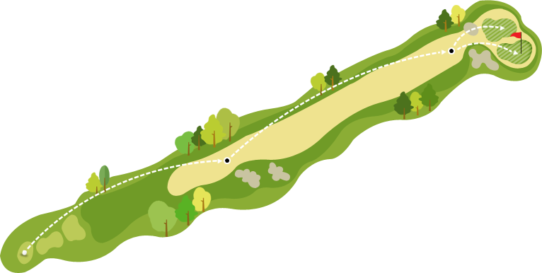 그린 우측의 깊은 골이 운명을 갈라놓는 코스. 구릉으로 함몰된 백사 벙커에서 탈출이 만만치 않아 그 날의 운수를 뒤집어버리기도 합니다. 특히 이전 코스에서 많은 점수를 벌어놓으셨다면 이번만큼은 방심 절대 금물.