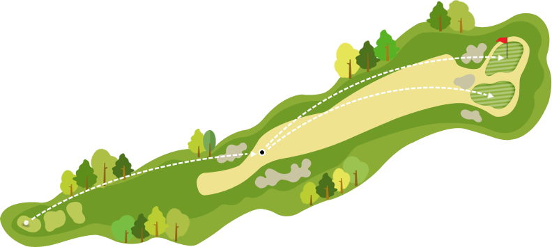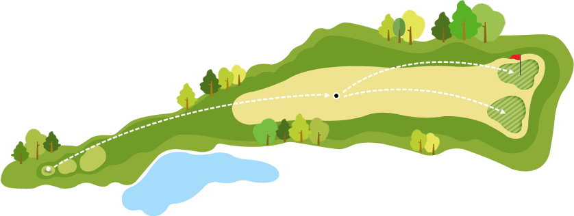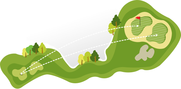 티샷 전방시야는 탁 트여 있지만 나머지 그린까지 페어웨이가 큰 나무 뒤에 숨어 있는 코스. 나무 위를 넘기는 고수의 길을 가느냐, 다소 치사(?)하지만 옆으로 돌아가는 하수의 길을 걷느냐, 그것이 문제로다.