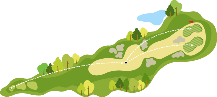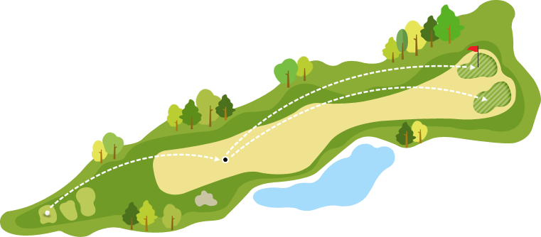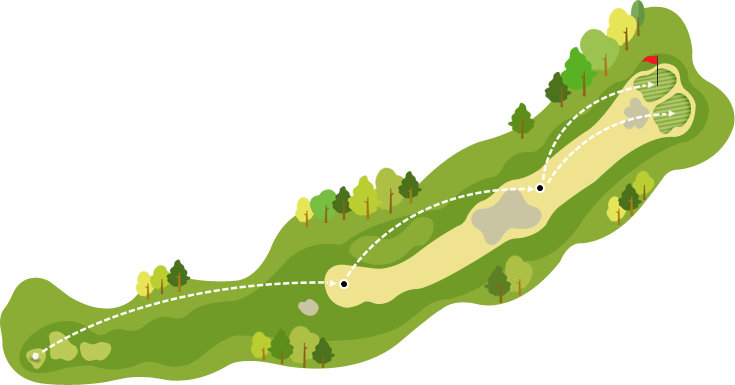 앞의 소나무 해저드, 중앙의 대형 벙커, 그린 앞 중앙의 벙커가 경쟁하듯 도열한 장애물 전시장. 무리하지 말고 겸손한 마음으로 또박또박 헤쳐나가야 합니다. 무리하면 패가망신. 연장을 나무라는 목수가 많이 생기는 코스.